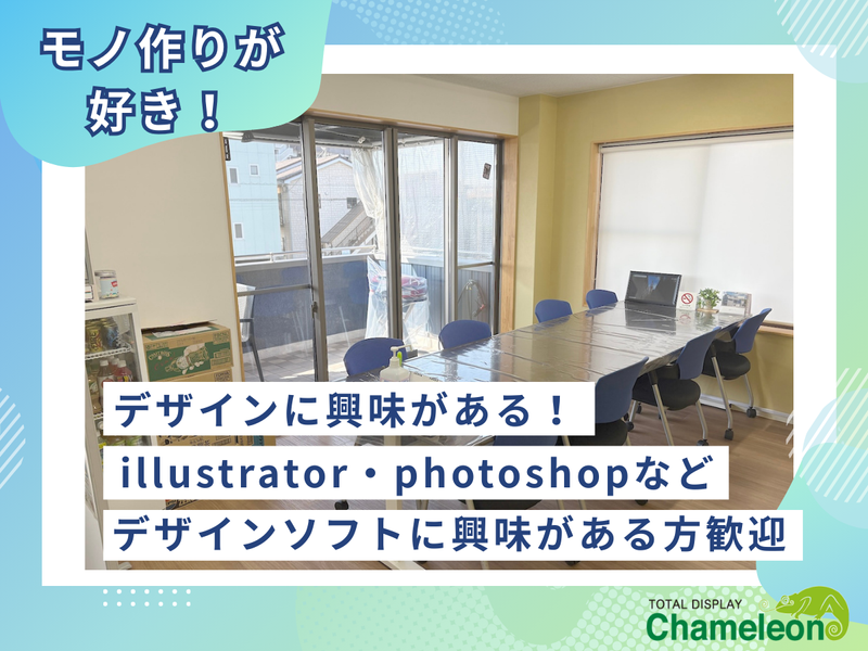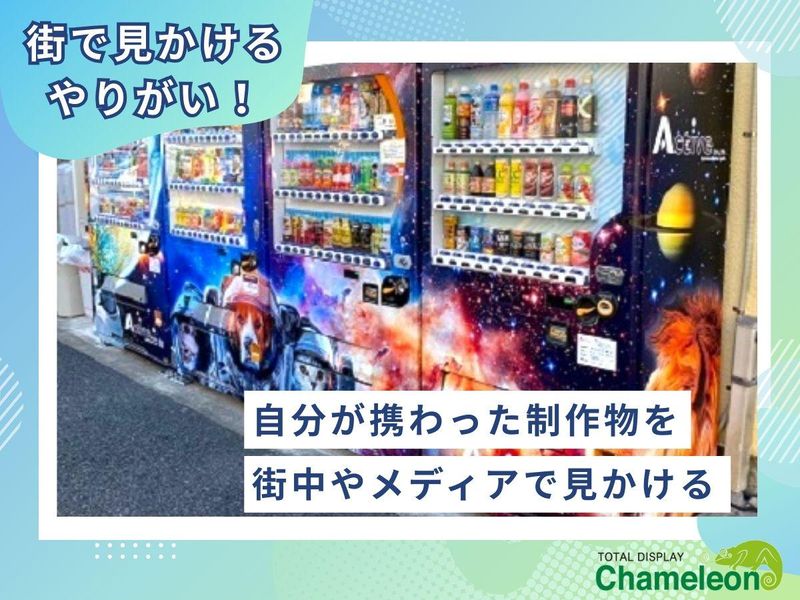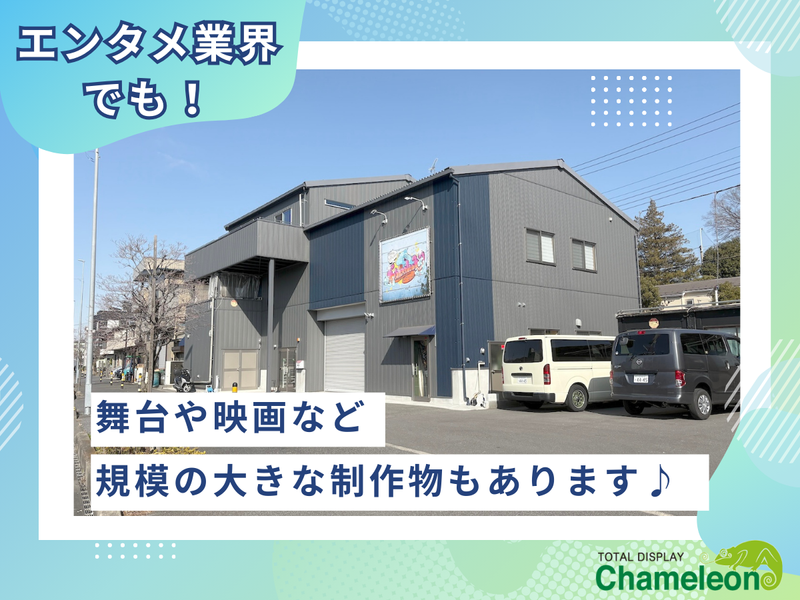 仕事内容 ✨パネル・看板・横断幕など、 ✨街や舞台、映画の世界を彩る ✨広告・印刷物制作に携わるお仕事です。 「自分が関わった制作物を街やメディアで見る」 そんなやりがいを実感できる仕事です。 社屋のリノベーションを行い、 キレイでオシャレなオフィス・工場に 生まれ変わりました! 気持ちよく、集中して“つくる”ことに 向き合える環境です。 【具体的には】 広告・印刷物の制作業務全般をお任せします。 インクジェットプリンターを 使って制作を行ないますが、 必要な知識は入社後イチから お教えするのでご安心ください。 【こんなものを作っています】 *映画の公開告知ポスター *カッティングシート *等身大パネル *垂れ幕 *舞台挨拶用の背景装飾 など illustrator・Photoshopなど、 デザインソフトに興味がある方や 美術・ものづくりが好きな方には、 楽しみながらスキルを身につけられる環境です。 必要な知識や作業は、 入社後にイチから丁寧に お教えしますのでご安心ください。 【サポート体制は万全!】 これまでも多くの未経験者を育ててきました。 さらに、先輩は「新人さんの助けになりたい!」 という面倒見のいい人ばかり。 安心してスタートしてみてください。 ・・・・・・・・・・・・・・・・ 志望理由は「なんとなく面白そう」でも、 「家が近いから」でも構いません。 私たちは、 川口市内に本社を構える広告制作会社。 ポスターやディスプレイ、パネルをはじめ、 幅広い制作物を手掛けています。 そんな当社では、 未経験スタートの先輩が多数活躍中。 もちろん今回も未経験者大歓迎です。 できることから少しずつお任せしていくので、 入社時に特別なスキルは必要ありません。 社屋をリノベーションし 綺麗な工場で、あなたも私たちと一緒に 新しいスタートを切ってみませんか。 ・・・・・・・・・・・・・・・・ 代表取締役社長 藤田 武 より 日勤のみ、希望休ありなど、 働きやすさには自信があります。 また、温厚なスタッフばかりですので 居心地の良さも抜群です。 実際、多くの社員が長年勤めてくれています。 ぜひあなたにもじっくり腰を据えて 働いていただきたいと思っています。 フランクな組織ですから、 困ったことがあったらぜひ周りを頼ってみてくださいね。 ・・・・・・・・・・・・・・・・ ホームページ https://www.chameleon-inc.jp/