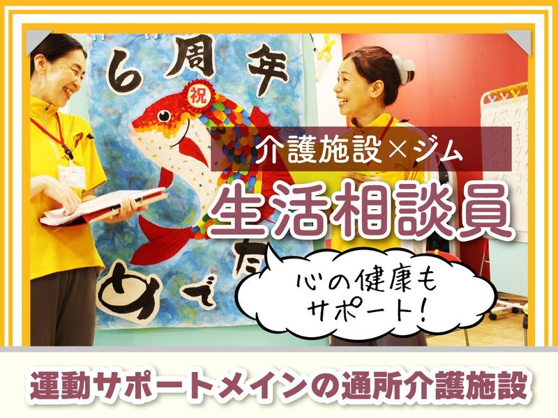 職場環境 *運動に特化したリハビリ型のデイ *プログラム自体は約3時間だけ 介護保険や要介護の方を対象に、介護予防と身体的機能の維持・向上を目的に、カラダとココロの健康づくりをサポートする施設です。