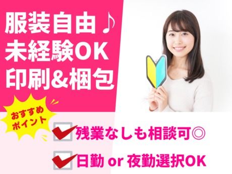 仕事内容 【仕事内容】 \未経験OK!印刷&梱包のシンプル作業♪/ ★入社祝金30万円支給あり(規定)★ 日勤 or 夜勤 選べるシフト×空調完備◎ ◎──────────────────────◎ 《パンフレット・ポストカード等の印刷・梱包業務/右京区》 ◆仕事内容 パンフレットやポストカード、コースターなど 印刷物の作成&梱包業務をお願いします! 【作業の流れ】 1)印刷データを機械にセット 2)機械が自動で印刷&加工 3)完成した印刷物を発送用に梱包 ★電気・ガスの請求書、紙コースター、ウェルカムボードなども印刷対象 ★カンタン作業なので未経験でもすぐに慣れます♪ (雇入れ直後)上記のとおり (変更の範囲)会社の定める業務 ◆職場環境 ・空調完備で年中快適♪ ・服装自由(安全靴は貸与) ・20代~50代までの男女スタッフ活躍中! ◆この仕事の魅力 ・日勤 or 夜勤 選択OK!自分の生活スタイルに合わせて働ける♪ ・高時給1,200円+交通費支給!夜勤なら月収25万円以上も可☆ ・未経験OK!コツコツ作業が好きな方にぴったり! ・頑張りはしっかり評価!昇給のチャンスあり◎ ・入社キャンペーン最大30万円支給(規定) ◆こんな方にオススメ ・安定して長期で働きたい方 ・細かい作業やモクモク作業が得意な方 ・夜勤でしっかり稼ぎたい方 ◆応募について ・履歴書不要/WEB面接OK(スマホ・PC対応) ・派遣が初めての方も安心♪しっかりフォローします! 【こんな方にオススメ】 ・セカンドキャリアとしてのお仕事をお探しの方 ・フォークリフト免許をお持ちの方 ・高収入・高時給のお仕事をお探しの方 ・商品検品・仕分け・ピッキングなどの倉庫内作業の経験を活かしたい方 ・梱包・包装・組立・加工などの工場製造の経験を活かしたい方 ・検査・充填・品出しなどの機械オペレータの経験を活かしたい方 ・食品工場(肉・鮮魚・野菜・惣菜)での盛り付け・調理・材料カットの経験を活かしたい方 ・経験が浅いけどスキルアップしていきたい方 ・力仕事に抵抗のない方 ・寮完備や送迎があるお仕事を探している方