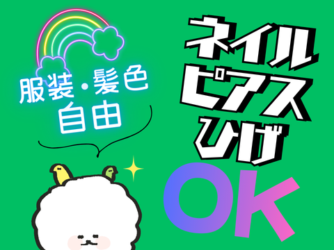 週3日~OK♪約5時間の短時間勤務★服装自由♪ネイルOK