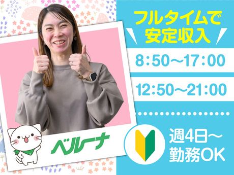 仕事内容 ◇◆人気オフィスワーク◆◇ ■雇用形態 アルバイト・パート ■勤務時間 【月~土】 (1)8:50~17:00/週4日~ (2)12:50~21:00/週4日~ 【日・祝日】は、 8:50~21:00の間で1日4~8時間程度 ■休日 土日祝を含めたシフト制 ※時間・曜日応相談 ■勤務地 柏座コールセンター 「上尾駅」~徒歩15分 (埼玉県上尾市柏座4-6-7) ■給与 \1270~ ■応募条件 ★未経験歓迎! ★主婦(夫)・学生(高校生可)・フリーター活躍中! ★学校帰りに働きたい学生さん活躍中! ★シフト調整は柔軟に対応! 【採用HP】 https://belluna-arbeit.net/jobfind-pc/area/All?freeword=%E6%9F%8F%E5%BA%A7%E3%82%B3%E3%83%BC%E3%83%AB%E3%82%BB%E3%83%B3%E3%82%BF%E3%83%BC ◇◆注文受付の受信メインだから始めやすい◆◇ 東証プライム上場♪ 【通販ベルーナ】 受信メインのコールセンター ◎残業ほぼナシ!未経験歓迎! お客様からの注文受付やお問合せ対応を中心にお任せします。 未経験スタートの方がほとんど! 入社後は研修からスタート♪ マニュアルを確認しながら、PC操作やトーク練習を行いお電話デビューを目指します! 動画を見ながら自分のペースで復習可能! お電話対応中に困った時は、手を挙げれば先輩が走ってサポートへ行きます。 >>フォロー体制もバッチリ♪ ―――――――――――――― 研修終了後もしっかりとサポートします! お仕事で困ったこと ミスで落ち込んでいること お客様対応で嬉しかったこと 働き方についての相談など・・・ 些細なことも遠慮なく話してくださいね! オペレーター経験があるからこそ境遇を理解したり、 実践的なアドバイスをお伝えできる先輩スタッフが揃っています。 【ここが魅力★】 *幅広い年齢の方が活躍中 *フリーター、主婦さん活躍中! *学校行事やご家庭の急な都合にも極力シフトを変えて対応 *コミュニケーション能力も自然と身につく! 和やかな雰囲気で、協力しあいながら働ける職場です♪ きれいなフロアでオフィスワークができます ◇◆働きやすさのPOINT◆◇ ★残業ほぼナシ! 時間固定のシフト制なので、 お迎えの時間が決まっている方や 習い事や家事と両立したい方にもオススメ♪ ★未経験から始めるスタッフがほとんど! コールセンターやオフィスワークが 初めてという方も多数在籍中! 研修や、先輩スタッフのサポートがあるので 未経験の方でも安心して始められます◎ ★シフトも柔軟!調整OK テスト期間や帰省などのお休みもOK お子さんの行事や急な体調不良などのお休みもOK 家事や育児と両立したい主婦(夫)さんに ピッタリの柔軟シフトが推しです! お子様が急に熱で休みたい、部活が遅れて出勤時間が遅れる! しっかり対応させていただきます! ======= 選べる勤務時間 ======= ◆急なお休みや、呼び出しによる早退にも柔軟に対応しています! 子育て中のメンバーも多いので、助け合いながら安心して働くことが可能です◎ ◆高校生・専門学生・大学生も活躍しやすい♪ 試験期間や、サークル行事などに合わせてお休みの取得も可能! 学業と両立しながらお小遣い稼ぎができますよ! ◇◆個別お仕事説明会開催◆◇ ベルーナグループで一緒に働こう♪ 個別説明会を随時開催中◎ 【場所】柏座コールセンターにて ※所要時間は30~40分程度 ◎お持ち物:筆記用具のみでOK! 説明会&面接時の履歴書不要です! ☆今だけ限定☆ ◆◆ スタッフインタビュー ◆◆ ━━━━━━━━━━━━━━━━ 10代男性(高校生)/入社6か月 ━v━━━━━━━━━━━━━━ ▼シフトは学校とバランス取れてますか? ┗部活やテスト、体調不良の急なお休みも対応してくれます。 シフトを別日に変更することができるから、助かってます。 ▼研修やサポートの環境は? ┗ゆっくりと丁寧に教えてくれます。 「前よりも上手になったね」と、 先輩から声かけて頂く事も多く、 モチベーションアップに繋がっています。 ━━━━━━━━━━━━━━━━ 30代女性(パートさん)/入社7か月 ━v━━━━━━━━━━━━━━ ▼お仕事を始めてご家庭との両立は大丈夫ですか? ┗ちょうど、幼稚園へ行っている間の勤務時間で お迎えまで少しあるのでついでに買い物まで終わらせられます。 ▼実際お仕事してみてどうでしたか? ┗とても楽しいです。 たくさんのお客様とお話ができる事や ねぎらいの声をかけていただけるととてもやりがいを感じます。 プチイベントがいつもワクワクします。 ━━━━━━━━━━━━━━━━ 30代女性(パートさん)/入社3か月 ━v━━━━━━━━━━━━━━ ▼入社する前に不安だったことは? ┗小さい子供がいるため急なお休みが気になっていました。 柔軟に対応してくれるし、あたたかい言葉をかけてもらえるのでとても救われます。 研修期間は土・日がお休みなので子供の預け先を心配しなくて良いのが安心。 ▼職場の雰囲気は? ┗みなさん優しい人ばかりで声をかけてくれます。 ママさんの先輩が多いので、家庭状況について理解があるのが嬉しいです。 ▼研修やサポートの環境は? ┗研修期間は横にいてくれて丁寧に教えてもらえるので
