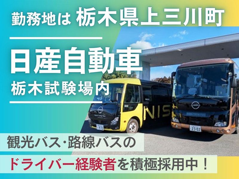 仕事内容 将来を見据えた転職を 考えている方は、ぜひ当社へ! 日産グループである 当社の福利厚生は万全です! ◆ワークライフバランス充実! ◆完全土日休み、年間休日121日 …など、プライベートと両立できる 勤務スタイルで働けます。 現在のメンバーに中途採用は 大勢いるので大歓迎! ワークライフバランスを重視した 働き方を実現しませんか? ≪業務内容≫ 石橋駅から栃木工場を 往復する大型バス、 構内の巡回マイクロバスの 運行業務を担当していただきます。 ・車両管理(洗車・清掃等) 上記に付随する各種業務を行います。 シフトによって夜勤帯の勤務もありますが 25時までなので体の負担も少なめ! ◎これまでにトラックドライバー、 路線バス、観光バスドライバー経験 のある方が多数活躍されています! 使用車両は大型バス及び マイクロバスになります。 主に従業員の方たちの送迎がメインとなり、 他に車両の清掃や日常点検等も行って いただきます。 50代以上の方も多数活躍中です!
