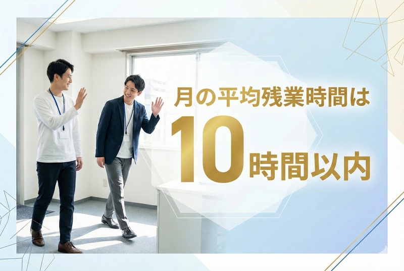 勤務時間詳細 実働時間:1日あたり8時間 平均勤務日数:1ヶ月あたり20日 〜 22日 勤務時間: 10:00-19:00(休憩60分) ✅月の残業時間は 10時間未満がほとんどです。