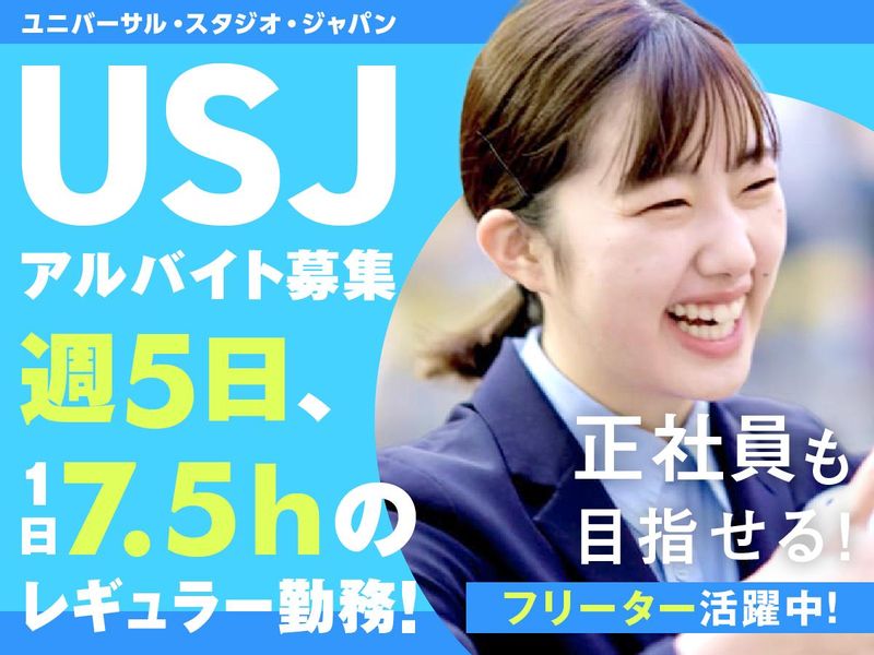 仕事内容 ユニバーサル ・ スタジオ・ジャパンで ワクワクドキドキをゲストにお届け! イベントでパークを盛り上げるショーや グリーティングのサポート業務⭐ ✅ゲストがキャラクターと写真を撮るお手伝いや ショーのタイミングで周りが混雑しないよう エスコートを行う「仲間のサポート」業務♪ 裏方でもあり、テーマパークの顔でもある 重要な役割をお任せします! ✅週5日レギュラー勤務 フルタイムで働きたい、 社会保険に加入したい、 正社員を目指したい方も活躍中! ✅クルーだけの特典たくさん 無料招待券や割引チケットの配布 クルー限定パークイベントもあり♪ 他にも、従業員食堂の割引、 勤務時間に応じたマイレージボーナスなど 長く働くほど働くとお得な特典がいっぱい!