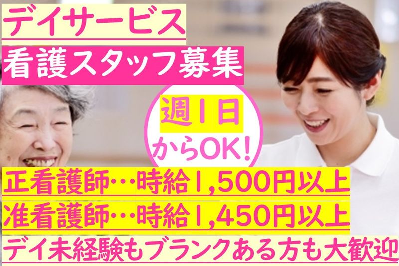 デイサービス看護職員募集!週1日からOK! ●正看護師・准看護師どちらも大歓迎●未経験可●年齢不問
