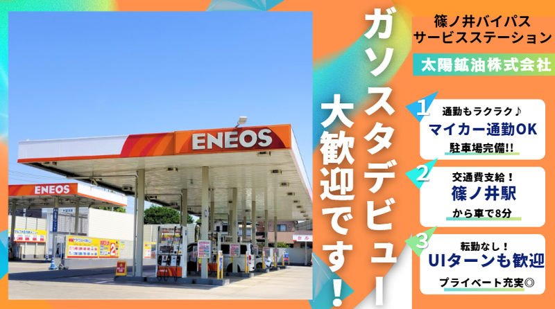 仕事内容 \ フリーター・Wワーカー活躍中 / ⚡週2日~短時間で働ける! ⚡セルフだから難しい作業はありません! ⚡乙4所持者は優遇 未経験からでも始めやすい環境である事をお約束します! 気さくな先輩が丁寧に仕事を教えていきますので、安心してご応募下さい! <具体的な仕事内容> ✅お客様の誘導 ✅店内の清掃 ✅セルフ給油機の操作説明 などの簡単なお仕事をお任せしていきます! 給油経験がなくても、お客様に説明ができれば大丈夫◎ 難しいことはないのでご安心を! \ 資格所持者は優遇いたします / ガソリンスタンドはガソリンや石油、灯油など危険物をたくさん取り扱う場所のため、危険物乙4類資格を活かすには最適な職場です! もちろん、入社後に資格取得支援制度を活用してスキルUPを目指す事も出来ますよ(*˘︶˘*)。・*✧ 「ここで長く働きたい」と思ったら社員になる道もご用意しています! 先を見据えて長く働ける環境で、一緒にチャレンジしていきましょう♪ \ 太陽鉱油についてご紹介 / トラック向けに軽油を”掛け売り”で販売するSSは”フリート”と呼ばれており、私たち太陽鉱油もフリートの大手として活動してきました。 その甲斐あって今では多くの運送会社様とお取引いただけるようになり、毎日たくさんのトラックが来店されます。 日本の貨物は年間およそ50億トン。 そのうち90%以上がトラックによる輸送です。 実際に仕事をしていると、私たちが「日本の物流と生活を支えている」と実感することができるからやりがいはバツグンですꙬ!!