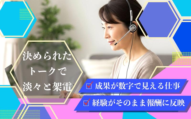 アピールポイント: ✅報酬期待を裏切らない透明な評価制度 ✅1アポ7,000円+インセンティブ有✨ ✅経験者が集う場所で更なるスキル向上へ✨ ✅フルリモートのため通勤不要! 【社員インタビュー】 「在宅でも、全力で向き合えば月収UP✨ 自分を律して取り組む分、見返りも特大! 前職の給与を大幅に超える感動を、 ぜひあなたも体感してください!⏩」