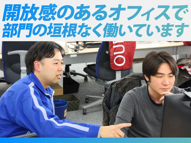 職場環境 本社1階に工場を併設しており、業務効率化のために最新設備の導入も積極的に行っています。 また、工場内には冷暖房も完備しているため、暑い夏や寒い冬でも快適に作業を行える職場環境ですよ◎