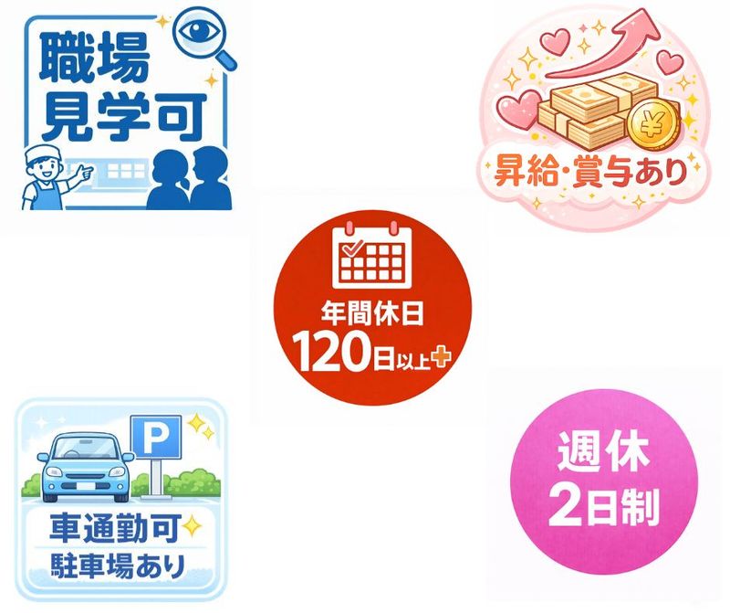 資格 【必須】 ●45歳以下の方 (長期勤続によるキャリア形成を図るため) ●高校卒以上 ●Excel・powerpoint・メールの 基本的操作ができる方 ●普通自動車運転免許(AT限定可) 既卒・第二新卒歓迎 主婦・主夫歓迎 ブランクOK