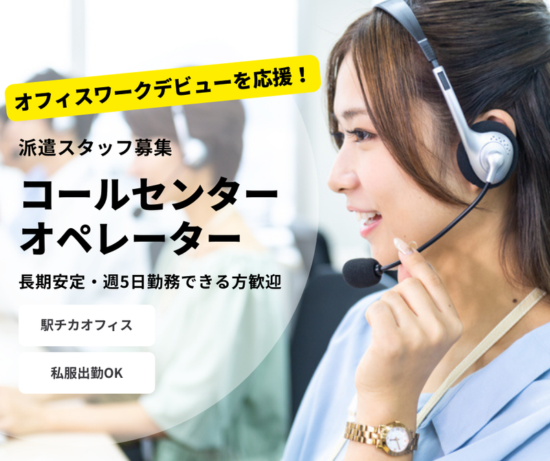 求めている人材 ■基本的なPC操作が可能な方 ■コールセンターでの就業経験がおありの方 ◎活躍するスタッフの前職は・・・ ・POSレジを使った接客販売(レジスタッフ) ・アパレル店舗スタッフ ・受付 ・飲食店での接客(居酒屋、カフェなど) などのご経験を活かして活躍中 ブランクOK 学歴不問 シフト勤務 交通費支給 大手企業 有名企業 分煙 幅広い年齢層活躍中 社保完備 月20万円以上可 Q:長期で勤務できますか? A:3ケ月以上の長期のお仕事ですので、長くお勤めできます! Q:勤務地は駅から近いですか? A:駅から徒歩10分圏内で通えます! Q:オシャレしながら働きたい! A:カジュアルな服装での勤務OKな職場です◎ Q:40代以上の応募は可能ですか? A:応募OKです!経験も活かせますよ