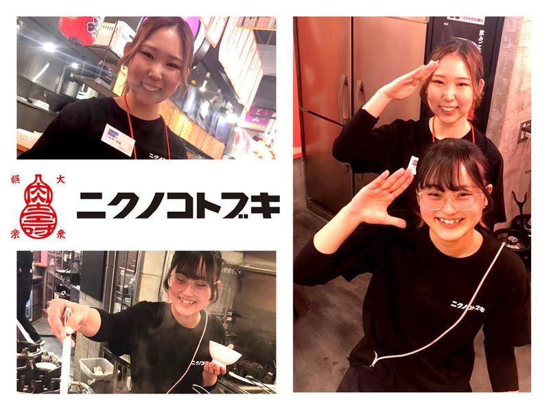 仕事内容 【 POINT 】 *スタートから月給30万 *賞与有 最大100万円の支給実績あり *完全週休2日・1日8hに変更など 働き方の相談も可能! ー 【 仕事について 】 人気の居酒屋「大衆娯楽ニクノコトブキ」 にてホール・キッチンなど 店舗運営業務をお願いします。 <ホール業務> *お客様のご案内・電話応対 *料理の配膳・片付け *会計 など <キッチン> *料理の仕込み・調理 *洗いもの 【 頑張り次第で稼げる! 】 賞与有 頑張り次第で1回の賞与につき 最大 "100万円" 支給の実績あり! 「たくさん稼ぎたい!」 という方にはぴったりのお仕事です◎ 【 働き方について 】 勤務時間は 12:00-24:00 休日は月6日 ですが 「休日を増やしたい」 「勤務時間を減らしたい」など ご希望がある方はお気軽にご相談ください! ※給与変動あり 実際に完全週休2日で 働く方も在籍しています。 【 採用担当より 】 当店はアルバイト・正社員の垣根はなく 「ともに働く仲間」として 大切にしております! 学生バイトも・パートさんも・役員も みーんな距離が近く、楽しんで働けて 相談もしやすい職場です! 少しでも興味をもってくださった方は ぜひ一度お話ししましょう。 やりがいのある仕事と 明るくフレッシュな仲間たちが あなたを待っています。 ご応募をお待ちしております。 【 こんなお店です! 】 大衆娯楽 ニクノコトブキは 「外食こそが一番身近な娯楽!」 という理念の元 安全・安心の美味しい食事を毎日ご提供! 晴れの日も、雨の日も お一人様でも、団体様でも! 誰でもいつでも立ち寄れる 「食の娯楽場」を目指す 大衆娯楽居酒屋です! <当社HPもご覧ください> https://quadfoods.net