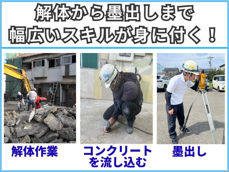 アピールポイント: ====== 社長からのメッセージ ====== はじめまして。 北翔建設産業の代表、北 光洋(きた みつひろ)です。 まずは、当社の求人に興味もってもらってありがとうございます! 「建設業=怒鳴られる・上下関係が厳しい」… そんな古いイメージは、一緒に捨てていきませんか?! というのも、僕、体育会系のノリが大嫌いなんです。 怒鳴り声が飛び交う現場— 「気合いで乗り切れ」という精神論とか— 実は、前職の大手スポーツメーカーも体育会系で、 その頃から、本当に嫌だったんです。 だから当社では、感情で叱らない。 「失敗は次の成長につなげる」をモットーにしてます。 ・挨拶をする ・助けてもらったらお礼を言う そんな当たり前のことを、当たり前に大切にする。 そして、もう一つだけ言わせて欲しい。 『家族や大切な人を犠牲にして働くなんておかしい!』 と私は考えています。 子どもの行事や家庭の用事で休むのは"当然"。 これは私自身の幼少期の経験から、強く思うことです。 それだけでなく、 “働く親”を応援したいという思いで 扶養の有無関係なく、配偶者手当・子ども手当も扶養に関係なく支給しています。 暮らしの安心があるから、 仕事で最高のパフォーマンスが出せる。 私は本気でそう信じています。 ここに少しでも共感してもらえたら嬉しいです! お会いできるのを楽しみにしております!