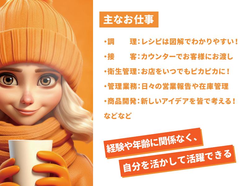 仕事内容: 人気遊園地内のカフェスタンドでカフェランチ、ドリンクやスイーツの販売・調理をはじめとする飲食サービスのお仕事です。 【主な仕事内容】 * 販売、調理盛り付け、接客 * 清掃、食材管理 * 在庫の整理整頓 * レジや券売機の操作 * 事務作業など フリーター、初めてのお仕事、仕事復帰、転職、新社会人、高専卒の皆様。 飲食店での接客、調理経験のある方、コンビニや量販店などの対面接客の経験がある方は歓迎いたしますが、飲食サービスは未経験でももちろん大丈夫ですし、お仕事が初めての方でもしっかりレクチャーするので安心して働けます。