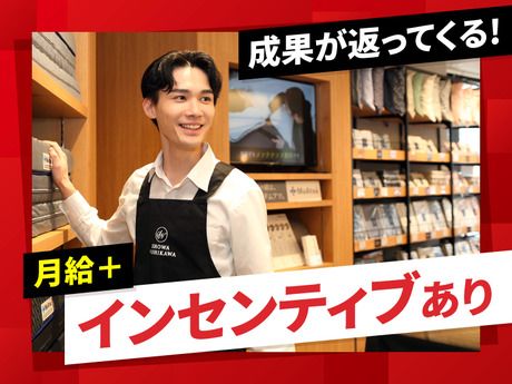 仕事内容 <お仕事の流れ> ■寝具・タオルの販売・接客をお願いします。 ・お客さまのお迎え、ご案内 ・睡眠のお悩みなどをヒアリング ・寝具・タオルのご提案 ・お渡しとお会計 ・購入後メンテナンスやアフターフォロー ・商品の在庫管理・発注 ・ほか、簡単なPC業務 など ■マネジメント業務 ・シフト管理 ・売上管理 など <専門店ならではの最高級寝具で快眠をサポート!> 人生1/3、1日約8時間、長い時間お身体をゆだねるのが寝具。 質感やフィット感にこだわった良質な寝具を取り揃えています。 試し寝、試し掛け、フィッティングをしていただくことで 「こんなに軽いんだ!」 「こんなに暖かいんだ!」 「こんなに寝返りがしやすいんだ!」など お喜びの声をたくさんいただけるお仕事です。 <プロとして頼られるお仕事です> 「寝返りを打つのが辛くて…」「首が痛くて気持ちよく眠れない…」など、 睡眠のお悩み相談でご来店いただくことが多いのが「昭和西川」の特徴。 お客さまのお話をもとに、どんな寝具が快適になるかを考えます。 「見違えるほどラクになった!」と喜んでいただける瞬間は何よりも嬉しく、 プロとしてのやりがいも生まれます。 <お客様と長いお付き合いになることも!> 購入後もメンテナンスがあり、 いつまでも最適な状態でご利いただけるのも 満足度や信頼が高まるポイント。 「いつもの方に」とご指名をいただけたり、 「家族用にもお願い」と、新しい寝具を ご依頼いただく嬉しいお付き合いに 繋がることもある販売です。 <じっくりと末永く…な接客です> 睡眠にお悩みを抱えていたり、 購入を考えて来店されるお客様がほとんど。 そんなお客様に寄り添い、ご提案を行います。 ご納得いただけるまで何度も微調整します。 - ■勤務時の服装 上:白色シャツ 下:黒色ズボン 靴:スニーカーOK(黒色) ※制服なし ※黒色エプロン貸与