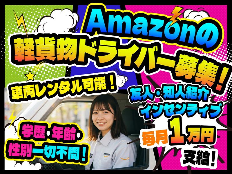 仕事内容 未経験でも安心! Amazonオフィシャル配送パートナーとして、新しい働き方を始めませんか? 「頑張った分をすぐに手にしたい」 「自分のペースで自由に働きたい」 そんなあなたの想いを、当社は全力でサポートします。 私たちは、Amazonオフィシャル配送パートナーとして、 安定した物量と安心の日給保証で、未経験からでも高収入を目指せる環境をご用意しています。 軽貨物車での配送勤務の方は、 普通自動車免許(AT限定可)さえあれば、経験や学歴は一切問いません。 ★自転車での配送希望の方も応募可能!! 万が一の故障にも対応できるサポート体制で、 あなたの配送業務を強力にバックアップ。 さあ、私たちと一緒に、新しい一歩を踏み出しましょう! あなたのご応募を心よりお待ちしています。 * * * ◤ ̄ ̄ ̄ ̄ 仕事の流れ ____◢ ✅ ①直行・直帰で時間を有効活用! ご自宅から直接、担当エリアにある配送センターへ向かいます。 ✅ ②荷物の積み込み 配送アプリの指示に従い、担当する荷物を軽ワンボックスカーに積み込みます。 仕分けは不要なので、すぐに準備が完了します。 ✅ ③出発! 配送アプリのナビを使って、指定されたルートを回ります。 土地勘がなくても、道に迷う心配はありません。 ✅ ④お届け Amazonで購入された商品を、個人宅や企業へお届けします。 配達エリアは、置き配や宅配ボックスの利用率が高いエリアが中心。 効率よく回れるため、スムーズに業務が進められます。 * * * ◤ ̄ ̄ ̄ ̄ ̄ ̄ 配送先について ______◢ 弊社の委託先である下記の配送センターに出勤し、 荷物の積み込みを行い、指定エリアへ配送していただきます。 ✨ 配送センター 埼玉県鶴ヶ島市太田ヶ谷757-1 ✨ 配送エリア 基本的に埼玉県内エリアとなります。 ✨ 配送エリアの特徴 マンションが非常に多いエリアです。 宅配ボックスや置き配の利用率が高く、 比較的軽い荷物が多いため、 効率よく業務をしていただける環境です。 * * * ◤ ̄ ̄ ̄ ̄ ̄ ̄ ̄ ̄ 魅力Pointをご紹介 ________◢ ①徹底したサポート体制  ̄ ̄ ̄ ̄ ̄ ̄ ̄ ̄ ̄ ̄ ̄ 80%以上が未経験からのスタートです。 充実した同乗研修に加え、車両の故障時にはレッカーサービスと提携整備工場がサポート。 独り立ち後も、安心して業務に集中できる環境です。 ②働きやすさを追求した柔軟な働き方  ̄ ̄ ̄ ̄ ̄ ̄ ̄ ̄ ̄ ̄ ̄ ̄ ̄ ̄ ̄ ̄ ̄ 勤務は週4日からOK。 あなたの希望に合わせて柔軟なシフトを組むことができます。 担当分の配送が終われば、その日の業務は終了。 早く終わればその分、プライベートな時間が増えます。 ③あなたの頑張りを正当に評価  ̄ ̄ ̄ ̄ ̄ ̄ ̄ ̄ ̄ ̄ ̄ ̄ ̄ ̄ ドライバーとして経験を積んだ後は、管理者へのキャリアアップも可能です。 さらに、友人・知人を紹介すると、その方が働いている限り1名につき毎月1万円を支給。 あなたの活躍を多角的に評価します。 ④初期費用ゼロで始められる  ̄ ̄ ̄ ̄ ̄ ̄ ̄ ̄ ̄ ̄ ̄ ̄ ̄ 配送用の車両はリースで貸し出し可能です。 しかも、お仕事以外でのプライベート利用もOK。 初期費用を気にせず、すぐに業務を始められます。 * * * >>最後に・・・ あなたの「やってみたい」を応援します! 「本当に自分にできるかな?」「どんな働き方があるんだろう?」 少しでもそう思った方は、まずはお気軽にご連絡ください。 当社のドライバーの8割以上が未経験スタートです。 私たちが大切にしているのは、経験やスキルよりも、あなたの「頑張りたい」という気持ち。 どんな質問にも丁寧にお答えします。 面接というよりも、ざっくばらんにお話する場にしたいと思っています。 あなたとお会いできるのを楽しみにしています!