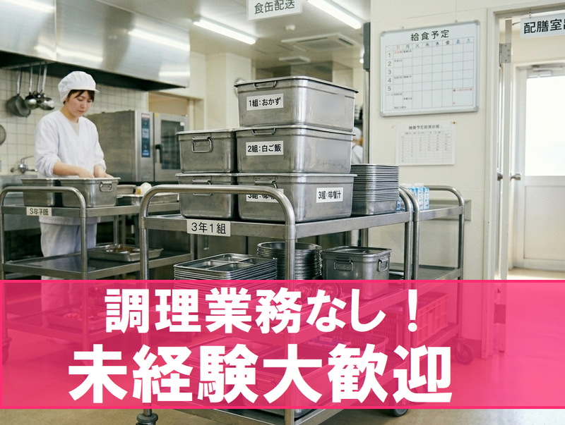 仕事内容 ⭐ 人気の配膳スタッフ、2名募集 ⭐ 「いってらっしゃい」~「おかえり」まで 幼稚園の送迎や、学校から帰宅に間に合う 【 子育てママさん活躍中の職場 】 ✨完全、土日祝日休み & 残業なし✨ ✨ 春・夏・冬休みも丸々お休み♪ ✨ ✿✿✿ 新年度の増員募集♪ ✿✿✿ 同期がいるから安心!「2名」採用予定 ✿❀✿━━━━━━━━━━━━━━━ 無資格OK!未経験OK!主婦活躍中! 【給食の配膳スタッフ。調理なし】 安定して働ける公立学校勤務 ━━━━━━━━━━━━━━━✿❀✿ 【 お仕事の魅力POINT 】 ⏩完全土日祝休み & 残業なし! ⏩10時〜14時半の短時間(週3日〜OK) ⏩扶養内OK!お休みの相談も柔軟です ⏩交通費は全額支給✨自転車通勤OK 【 当社のおすすめPOINT 】 ⏩スタッフ同士の相談だけでお休みOK ⏩急なお休みもお互い様の文化です ⏩調理師資格の取得支援/社員登用有 ⏩当社はWワークもOKです ⏩衛生上の待機でも給与6割保障 ⏩月1回、食品などが当たる抽選会あり 【お仕事内容】 当社の受託給食室から運ばれてきた給食を都島区の高倉中学校内の配膳室で、学級別に分けるお仕事です。 ー 午前中作業 ー ・ご飯やパン・牛乳など給食が入ったコンテナの受け取り ・配膳ワゴンへのセット ・各教室への運搬など ー 午後作業 ー ・残食の回収と計算 ・コンテナの返却・詰め込み ・清掃など ✔調理業務はありません! ✔未経験の20~60代の女性活躍中 ✔制服・マスクなど全て⽀給/準備不要 ✔自転車通勤OKの職場です! ✔ライフスタイルに合わせて、働き方の相談にも応じます!将来「もっと長時間働きたい」「もっと収入アップしたい」となったら、調理場へ移動など柔軟に対応OK。 ──────────―――――――― ⭐下記、学校にも勤務地あります⭐ ──────────―――――――― こちらは調理補助スタッフを募集中です。 ☆時給1230円~/9~15時勤務/給食無料 ☆その他、高倉中学校の配膳員と同条件 【都島区】高倉小学校・淀川小学校 【西淀川区】御幣島小学校 【城東区】鴫野小学校・成育小学校・鯰江東小学校 <こんな会社です> 全国にスタッフ3000名在籍の安定企業。 創業60年以上の実績で、⻑く働ける環境。 ■■■■■【 当社の魅⼒ 】■■■■■ ⭐温かな社⾵︕ 当社はフルーツやビール等が当たる「プレゼント抽選会(毎⽉)」の実施など 従業員を単なる労働⼒ではなく、 共に歩む「仲間」として⼤切にする⽂化が根付いています。 ⏩面接1回のみ!筆記・実技なし ⏩応募は約1分でカンタン入力 ⏩電話応募も歓迎▶06-6152-9061 【キーワード】学校給食 / 倉庫作業 / 軽作業 / 主婦パート / 子育てママ活躍中 / パート / 給食配膳 / 土日祝休み / 平日のみ / 残業なし / 扶養内 パート / 10時〜 / 14時半まで / 週3日 / 週3〜 / 未経験歓迎 / 学校内勤務 / 送り迎えと両立
