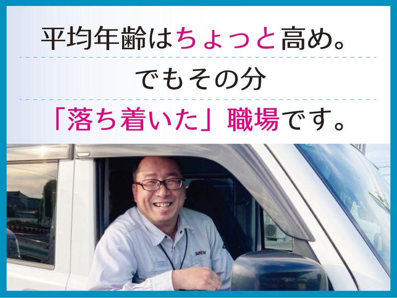 職場環境 【平均勤続年数13.5年!定着率◎】 営業所は所長を含め9名体制。 30代~40代を中心に幅広い世代の仲間が活躍しています。 オフィス内にはウォーターサーバーも完備! 快適な環境づくりにもこだわっています。 喫煙所:喫煙所あり(屋外)