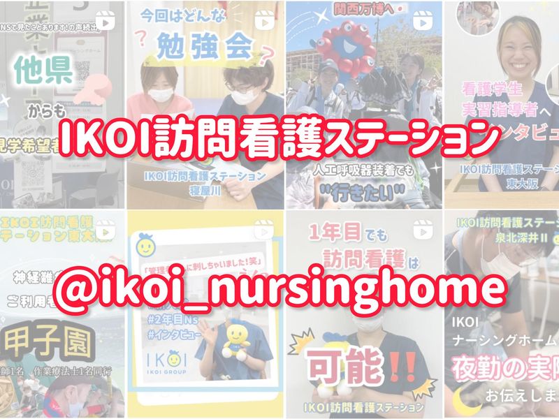 仕事内容 【業務内容】 ◎施設業務 ・医療処置/健康管理 ・社会保障制度に基づいた計画立案 ・カンファレンス/面談対応 ・薬剤管理 ・物品管理(医療機器含む) ・地域活動 ◎事務業務 ・カルテ記録(iPad) ・ドクターとのやり取り ・書類作成 ◎教育業務 ・新入社員オリエンテーション ・新卒看護師指導 ・勉強会実施(医療・看護・ビジネスマナーなど) ・看護学生向けイベント出展 【IKOI訪看の推しポイント】 *経管栄養や痰吸引などはもちろん、気管カニューレの管理など幅広い基礎看護技術を身に付けられます! →「まずやってみる」社風で、入職一ヶ月でルートキープができたスタッフも!一から学びたい人も積極採用中です! *外部セミナーや学会等の参加費用を全額会社負担!(規定あり) *看護業務だけじゃない!インスタ運営や営業活動など、一般企業で活かせる経験ができます!(希望者のみ)
