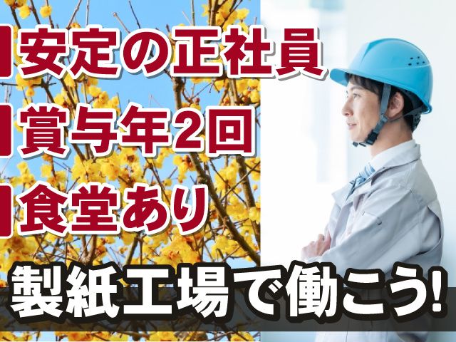 仕事内容 未経験から出来る工場ワーク! 嬉しい日勤専属&残業ほとんどなし! 情報用紙を製造する工場で、 用紙の表裏に塗布する塗料を製造する仕事です。 塗料を製造するのは主に機械が行うので、 あなたには主に機械の操作をお任せします。 《製造工程は大まかに3ステップ》 1.原料投入 2.溶解作業 3.微粒化作業 ・原料投入 機械へ原料を手作業またはクレーンで投入。 クレーンを使用する際は、フレコンからタンクへ投入します。 ・溶解作業 原料に水を入れる作業。 この作業では、塗料を均一な状態に整えます。 ・微粒化作業とは 塗料(液体)を均一に分散させる作業です。 <製造未経験でも、専門知識がなくても大丈夫!> 材料を混ぜ合わせたりする作業は全て機械が行います。 あなたには機械操作や、きちんと作動しているかなどの確認を行っていただきます。 充実した教育制度で、経験問わずあなたをサポートします! <しっかりとした教育制度あり> 入社後は充実した教育制度があります。 さらに先輩からの丁寧な指導で、あなたをしっかりサポートします! 資格が必要な作業に携わるときには、資格取得から社員をサポートします。 必要な資格取得の際は、費用は会社が負担します! 日勤専属としての勤務のため、生活リズムが整えやすいのも魅力のひとつ。 残業もほとんどないので、メリハリつけて働きやすい環境です。 当社は日本製紙株式会社からの委託業務が中心のため、仕事量も安定しています。 無理なく働けるので正社員として長期で働きたい方におススメ! <やりがいアップ!ボーナスあり> 賞与年2回の支給実績あり! 前年実績は3.52ヶ月/810,000円支給です。 <うれしい格安の社員食堂あり> 1食ワンコイン(500円)以下の食堂があるので食事面も安心。 屋内に喫煙スペースを設けているので、愛煙家の方も気兼ねなく休憩できます。 ・製造未経験からチャレンジしてみたい方 ・正社員として腰を据えて働きたい方 ・製造経験を活かしたい方 お仕事に興味を持ってくださったあなたのご応募お待ちしています!
