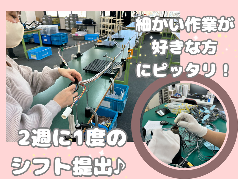 仕事内容 \アルバイト・パート募集/ ◇・◇・◇・◇・◇・◇・◇・◇・◇・◇・◇・◇・◇ 未経験のスタッフ活躍中 ⭐20代⭐しゅふさん活躍中⭐ ◇・◇・◇・◇・◇・◇・◇・◇・◇・◇・◇・◇・◇ 自動車部品の製造業務に 携わっていただきます! ◤ 具体的な仕事内容 ◢ ✅設計図をもとに、自動車用部品の製造 ✅電線の組み合わせや、ケーブルの切断・圧着作業 ✅図面に沿って、部品を決められた形に組み立て など・・ 自動車に欠かせない重要な部品を扱うため、 正確さと丁寧さがとても大切なお仕事です。 「細かい作業に集中するのが好きな方」 「モノ作りが好きな職人気質の方」 「コツコツ進める作業が得意な方」 にぴったり! 未経験の方でも、 手順に沿ってしっかり教えてもらえる環境です◎ ◤ おすすめポイント ◢ ✅週3日~、1日5時間~OK ✅髪色・髪型・服装自由♪ ピアスOK ∟あなたらしく働ける環境です! ✅休憩室完備 ∟オンオフをしっかり切り替えられる! ✅柔軟なシフト・休暇制度 ∟お子さんの急な体調不良でも安心 急遽のお休みも柔軟に対応します! ✅シフトは2週間に1度の提出 ∟余裕をもって予定を立てられる! ◤ 当社について ◢ 昔ながらの堅苦しいルールにとらわれず、 自由で働きやすい職場を目指しています! 勤務中も、水分補給・飴・ガムOK◎ リラックスして集中できる環境です♪ さらに、毎月1回の1on1ミーティングで、 仕事の相談やフィードバックの時間をしっかり確保。 頑張った分だけ成長を感じられる職場です! 少しでも気になる方からの ご応募お待ちしております! ぜひ一緒に働きませんか?