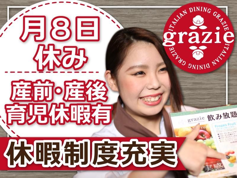 仕事内容 イタリアンを中心に多彩な料理をカジュアルに味わい、お酒を楽しめるダイニング「グラッツェ」のホールスタッフのお仕事です。 【具体的な仕事は】 オーダー取りや料理やお飲み物のご提供、お会計、テーブルセットなどの基本的なホール業務をお任せします。 まずは仕事の流れと当店の雰囲気を見ていただくため、お客様のご案内など簡単なお仕事から徐々にお任せしていきますので経験者の方もご安心ください。基本的な業務を覚えたら、シフト作成や売上管理などの店舗運営業務もお任せします。ゆくゆくは店長候補>店長へとキャリアアップを目指していただき、お店を率いる存在としての活躍を期待しています。 また、グラッツェでは誕生日や記念日などお祝いの日にご来店してくださるお客様も多く、そんなお客様のためにサプライズを全力でお手伝いさせていただいています。普段から「お客様に喜んでいただくには?」を考え、アナタの接客で素敵な空間作りを手掛けてください! 【「ありがとう」を大切にするお店です】 店名のgrazieはイタリア語で「ありがとう」という意味。設立以来、「夢とありがとう」を大切にしているお店です。 ご来店してくださったお客様と一緒に働く仲間に感謝の気持ちを持ち、共にグラッツェでの素敵な空間を楽しんでいただける方を歓迎します! 【キャリアアップのチャンスもあります!】 当社は社員ひとり一人が、「将来何をやりたいのか」を大切にしています。それを知るためにも定期的に行われるミーティングや年2回の面談で、上長と話し合える機会を設けています。普段の仕事の悩みなどはもちろん、キャリアアップなどについての相談も大歓迎です! また、会社として新規店舗の出店に注力しているため、新店の店長として活躍する道もあります。グラッツェ以外にもレモネード専門店や韓国商店など幅広くお店を展開をしているため、様々な経験を積むことも可能です。 また、実際にお店で働く現場の他に、幹部候補・本社勤務などポストも多数。入社後は経験や能力に応じた仕事やポジションをお任せし、その後は希望や適性に応じて店長やSVなど、満足のいくキャリアアップを目指すことができます! ※今回の募集では『グラッツェ札幌駅JR55店』での勤務となりますが、店舗の状況により『グラッツェ北2条店(札幌・さっぽろ駅徒歩1分)』『グラッツェすすきの南3条店(すすきの駅徒歩3分)』での勤務となる場合もあります。 他にも昨年9月OPENの『ニューイタメシ酒場 grazie すすきの南5条店』11月OPENの『ニューイタメシ酒場 grazie すすきの南4条店』とオープニング案件も2店あり、今後も新店舗の出店を予定しています。