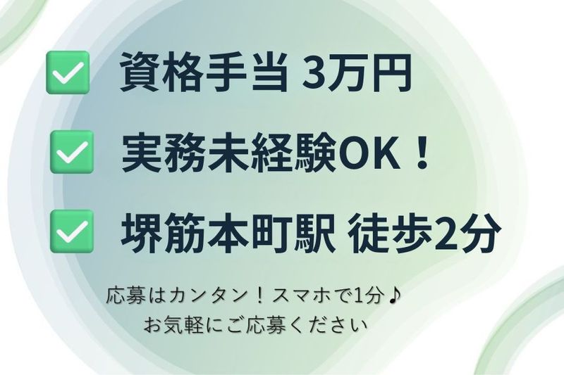 ⭐残業なし✅堺筋本町駅徒歩2分✅年間休日116日✅月給27万円✅実務未経験OK