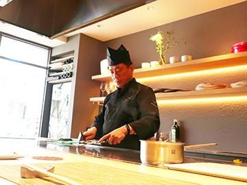 職場環境 <シェフより> 「オーナーである私がお客さんの目の前で調理するスタイルです。 落ち着いて食事を楽しみたい時や、記念日などの特別な日にも使っていただけるお店を目指しています」