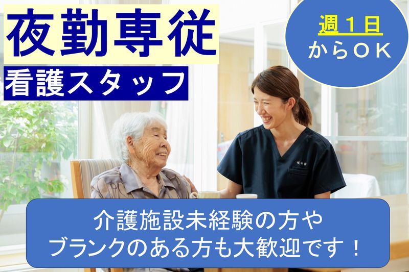 「夜勤」新規スタッフ募集!■週1回からOK!(希望日数ご相談ください)■Wワーク・副業もOK!■介護未経験の方も歓迎!■ブランクある方も大歓迎!