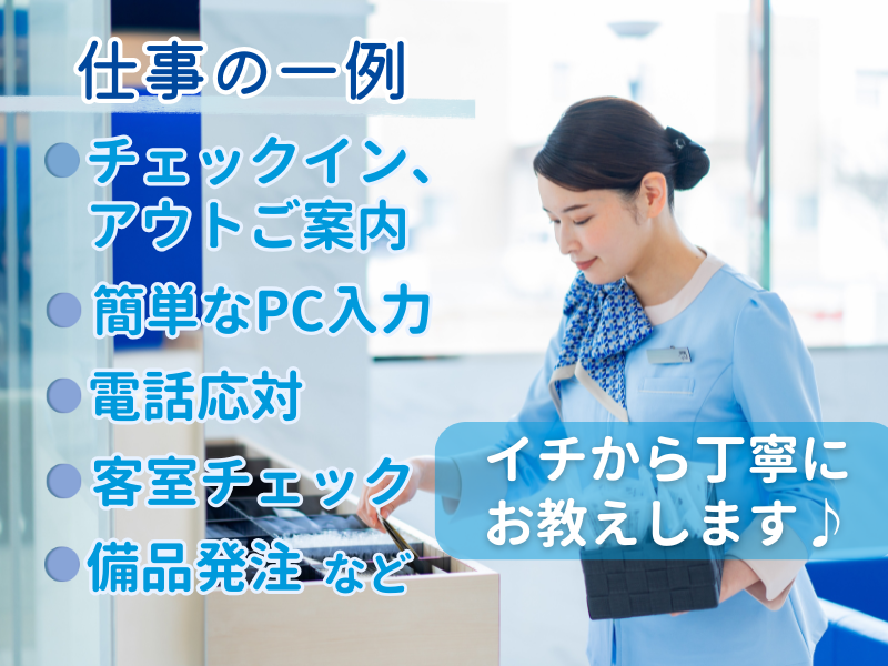 仕事内容 \\\こんな毎日が、現実になる/// ⏩退勤後にそのまま弾丸海外旅行 ⏩平日の混雑していないアウトレットでショッピング ⏩好きなアーティストのライブは全日程制覇! オフの日は、誰にも邪魔されず、とことん“好き”に没頭 そんなライフスタイルを叶えながら、 ちゃんと正社員として働ける環境がここにあります。 ――――――――――――――――――――――――― ✅お任せするのは… ■宿泊予約の受付・変更(電話・Web) ■チェックイン/チェックアウト対応 ※自動チェックイン機の操作案内が中心 ■備品・アメニティの準備・発注 ■ロビー・館内の巡回、簡単な清掃 ■売上入力・日報作成(PC作業) 【POINT】 ✅ 翻訳機があるので語学力不問 ✅ 経験不問/ブランクOK ✅ 座学+OJT研修あり/現場は常時2名体制で安心 ――――――――――――――――――――――――― ▼1週間とあるスケジュール(例) 月曜10:30〜火曜11:30:勤務 火曜午後〜木曜:完全フリー 金曜10:30〜土曜11:30:勤務 土曜午後〜月曜:完全フリー →「え?こんなに休みがあるの?」と思った方。 はい、本当です。 年間休日は169日以上。 1年の半分以上は“あなたの時間”になります。 ■Requirements Applicants must hold a residence status with no work restrictions. ■Job Description This position involves providing customer service in Japanese.