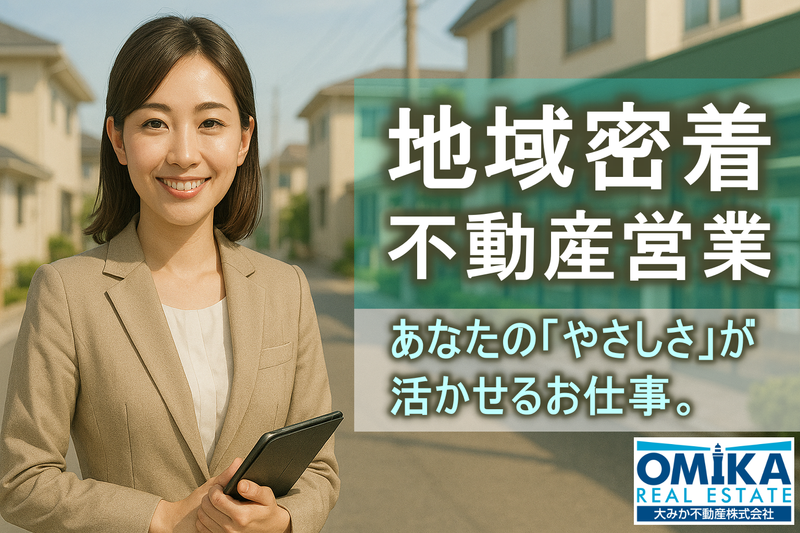 仕事内容 お客様の住まいに関するお悩みを共に解決し感謝されるお仕事をしませんか? < 注目ポイント!! > ✅完全週休2日制・年間休日120日 ✅残業20時間/月・メリハリある働き方 ✅有給取得率80%以上! ✅年3回の賞与!宅建手当は月3万円! ✅意欲の高い人を評価・昇進させる風土 (実績:27歳店長、31歳副部長、39歳事業部部長) _/_/_/_/_/_/_/_/_/_/_/_/_/_/_/_/ 【お仕事内容】 ご来店いただいたお客様の要望にそって 物件のご提案・ご案内・ご契約の作業をします。 <具体的には> ・お客様の問い合わせ対応 ・物件のご紹介、ご案内、ご契約 ・契約書類の作成等 ・間取り図や物件資料等の作成 ・物件撮影 営業サポート課や管理課があるので、 営業活動に専念でき業務負担も少ないです。 \\ココがお仕事のポイント①// HPのお問合せ・お客様の来店対応などが メインの完全反響型営業です。 飛び込みや電話営業は一切ありません! 営業初心者でも安心です! - - - - - - - - - - - - - - - - - - - - - - - - \\ココがお仕事のポイント②// 創業約60年。 「日立市に大みか不動産があってよかった」 そう思って頂けるよう、常にお客様目線で、 真摯にご対応してきました。 お部屋探しをサポートした学生さんの 親御さんから定期的に連絡があったり、 旅行のお土産をわざわざ 来店いただき頂いたり。 ご契約だけで終わらない関係性を 築けることも魅力の一つです。 - - - - - - - - - - - - - - - - - - - - - - - - \\ココがお仕事のポイント③// 頑張る社員を全力で応援、評価します。 年齢や性別は一切関係なく、意欲がある 社員は、積極的に昇級・昇格しています。 27歳で店長、産・育休を経て31歳で副部長、 39歳で事業部長をやっている社員もいます。 (管理職以上比率:男性55%:女性45%) - - - - - - - - - - - - - - - - - - - - - - - - 【 大みか不動産について 】 日立エリアの密着の不動産会社です。 創業約60年、日立市における住まいを 豊富なノウハウと共にご紹介してきました。 賃貸・売買・物件管理など不動産に関する トータルサポートをし、お客様の目線に 立って常に真摯な対応を心がけています。 <HP>https://omika.jp/
