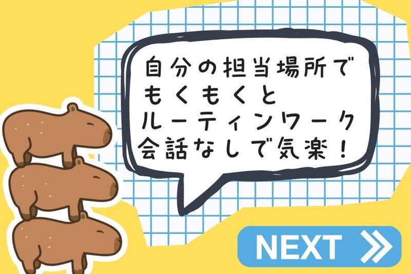 アピールポイント: 空調完備の快適室内で 座り作業メインが嬉しい‼ * 未経験OK * 日勤のみ * 残業なしOK * 20代~40代活躍中 * 正社員登用の可能性あり * ウォーターサーバー利用可 * 気温に応じて空調服・防寒着貸与 * 髪色ゆるめ * ネイルOK(手袋あり) * アクセサリーOK * 車・バイク通勤可 <日払い・週払い利用OK> \まるで毎日が給料日/ \\利用者急増中// \アプリで簡単申請/ お気軽にご相談くださいね!