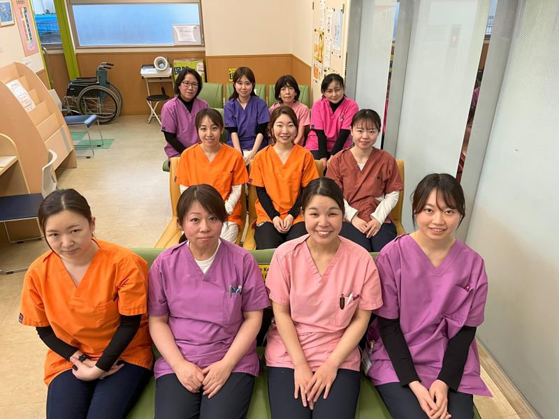 職場環境 「おいしく長生きのまちづくり」を スローガンに、一般歯科治療、 小児歯科、インプラント治療や 訪問歯科診療も行っています。 チェアー7台、歯科医1名・歯科衛生士 5名が在籍しており、幅広い年齢層の スタッフが活躍しています。 40代・50代が活躍中! 喫煙所:なし(敷地内全て禁煙)