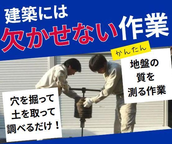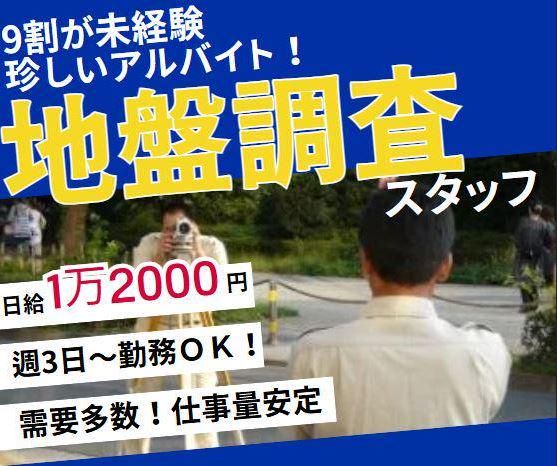 仕事内容 ◢◤◢◤地盤調査のアシスタント作業です!◢◤◢◤ ◢◤◢◤ 珍しいアルバイト! ◢◤◢◤ 「ただの地盤調査じゃない」 測るのは“土地の質”ですが、 それ以上に“あなたの力”が必要な仕事です。 外で体を動かしながら、週3日~勤務OK! 30~40代男性活躍中! 仲間と一緒に協力をしながら 体力が活かせる仕事です! ★土地の質を調べる地盤調査アシスタント! ★週3日~OKで無理なく勤務可能です! ★30代・40代活躍中! ★未経験の方も大歓迎! ////////////////////////////////////// 【雇用形態】 アルバイト 【給与】 日給1万2000円以上 +残業代別途支給 ☆交通費全額支給 【勤務時間】 9:00~17:30☆週3日~ 【勤務地】 東京・神奈川(東部) 埼玉(南部)千葉(西部)の各現場 ★1日数現場回るお仕事です ★基本は直行直帰 ////////////////////////////////////// 【地質調査をかんたんにご説明すると!】 1.地面に穴を掘る! 2.土を取る! 3.土の強度等を調べる! ★建築現場がある限り、 一生なくなることのない仕事であり技術! <<< 仕事内容 >>> 建設予定の土地に機械で穴を掘り、 土地の大きさを測るシンプル作業です。 コンパクトな装置を使った簡単操作なので 経験がなくても安心♪ ✅建築には欠かせない作業で、 正確な調査はとても大切!需要も多数! 公共交通機関や防災対策など、 当社への依頼も年々増え続けています! ✅安定生活を実現! 毎日仕事量は安定しています! 収入に困ることはありません。 月収26万円も可能◎ (日給1万2000円×22日勤務) シフトは週3日~OKなので、 あなたのペースで稼げます! ✅自由時間もあり! 1日に何現場か回りますが移動時間もある ので実際の調査時間は7時間程度です。 ⭐「Q:機械の操作って難しいんですか?」 →「答:簡単です!!コンパクトな 機械を操作するだけ。 未経験でも安心!」 ⭐実は・・・筋トレにもなるお仕事◎ 在籍中のパパさんにも好評! ⭐実は・・・結構稼げる仕事! 車移動でラクラク! バイトは移動中も 自由に過ごせる♪ ⭐ニッケンキソ・コンサルタントとは?⭐ 道路や河川、都市計画、 一般住宅のプランに伴う調査を行い、 地域の進化と環境保全に貢献しています。 住宅建設においても、創業以来、 15万件以上の住宅地を調査し、 その実績があります。 住宅建設や道路、公園、上下水道などの 社会インフラ整備において、 現地の詳細な状況を調査し、 設計や工事に必要な情報を提供しています。 「どんなお仕事内容なの?」 「安定して稼げるの?」 「どういう機械を使うの?」 という方は、面接にて細かく ご説明もしますので まずはご応募お待ちしています!