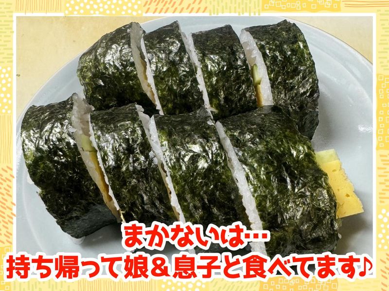 職場環境 30代40代50代のパートさんが活躍中! まかないが豪華で、お寿司や海鮮丼をご用意しています。お酒のほうの準備もしております。