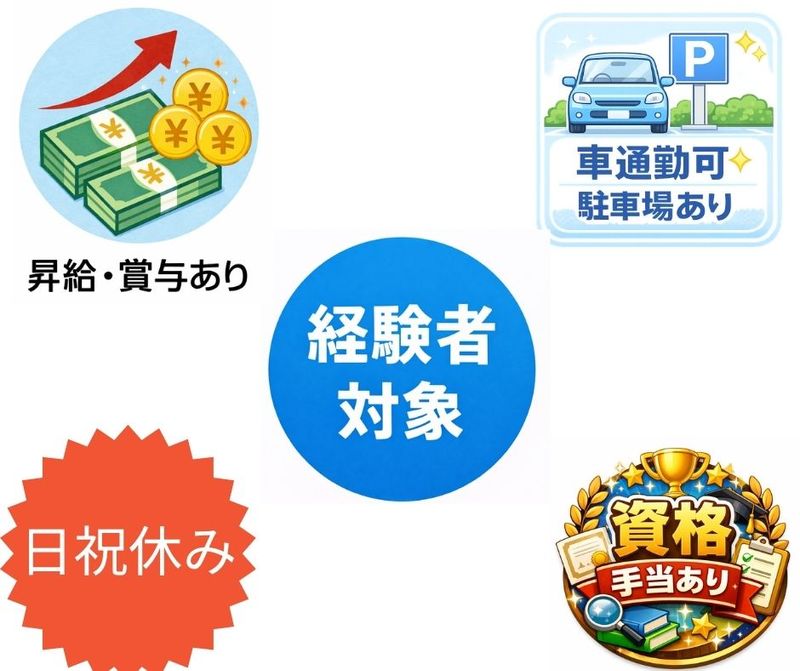 資格 【必須】 ●64歳までの方(定年が65歳のため) ●土木施工管理 経験者 ●普通自動車運転免許(AT限定不可) ※MTのみ 【こんな方を歓迎します】 ・これまでの経験を活かして さらにステップアップしたい方 ・キャリアアップや高収入を目指したい方 ・チームワークを大切にしながら働ける方 ・向上心と責任感を持って仕事に取り組める方 【歓迎】 土木施工管理技士資格 既卒・第二新卒歓迎 フリーター歓迎 主婦・主夫歓迎 ブランクOK