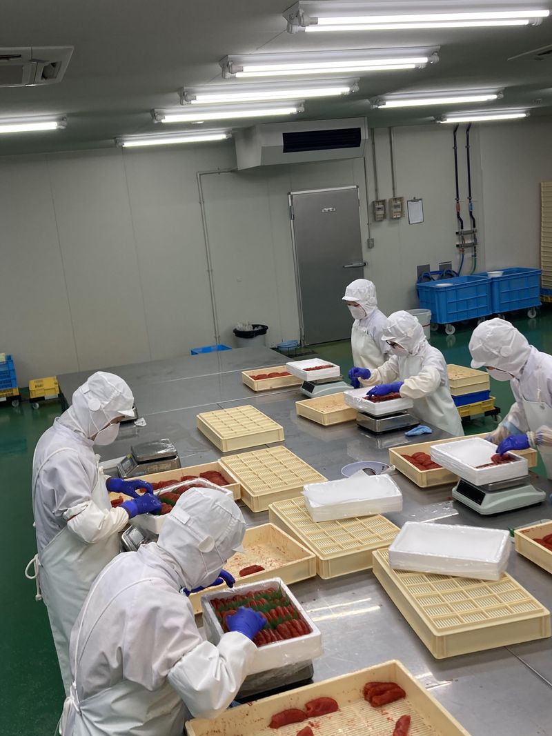 仕事内容 ①明太子とたらこの選別・箱詰めするお仕事です。 ② ①で選別した物を箱詰めする作業になります ※ベテランスタッフが親切丁寧にマンツーマンで教えていきます!