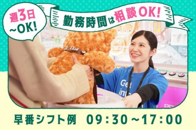 仕事情報 ● 仕事内容 9月にファミリー向け大型コンテンツもいよいよオープン! ご家族のたくさんの笑顔あふれる場を一緒に作りませんか? ゲームセンターの接客・作業全般の他、 新規事業にもチャレンジできる、注目のお店です。 接客を中心に、景品補充・管理・清掃など丁寧な研修で, 未経験の方でも安心してスタートできますよ。 未経験でも安心の研修制度 ゲームセンターで初アルバイトの方の為に 「お客さまの立場にたった接客」の仕方をロールプレイング などで学んでいただきます。接客がわからないまま フロアに立つことはないので安心です。 働き方自由!シフト相談OK! 「学校やサークルの空き時間に働きたい」「仕事や趣味の合間に 働きたい」「家事の合間に働きたい」「扶養範囲で働きたい」等 【シフト制 / 週3日~】なのであなたのスタイルで働けます。 また、テスト期間や子供の急な体調不良もご相談ください!! みなさんが長く働きやすい環境をご用意しています。 GiGOのゲームセンターとは 新ブランドGiGOは、全国各地に約200店舗のゲームセンターを 運営しています。UFOキャッチャーやメダルゲームなど、年齢に 関係なく楽しめるアーケードゲームを豊富にご用意しています。 アルバイトの方にはぬいぐるみやマスコットなどの飾りつけも お願いしています。「すき」を仕事にしてみませんか。 会社情報 当社は、ゲームセンター、コラボカフェなど 幅広いエンタテインメント施設を展開しています。 楽しい時間と空間を通じて、 沢山の笑顔と感動を一緒に創って下さる アルバイトスタッフさんを募集しています。