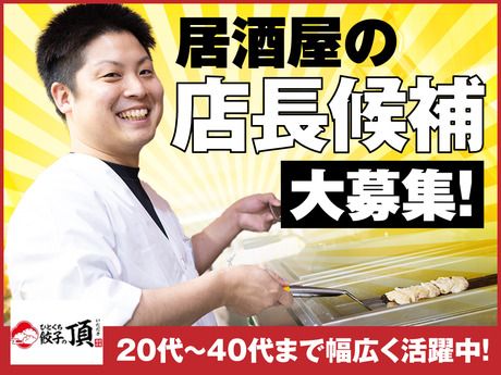 仕事内容 早期キャリアアップも可能★エリア外転勤なし!年数回の昇格・昇給も可能! ー・ー・ー・ー・ー・ー・ー <お仕事内容> 毎日謹製!店内仕込みの餃子が自慢の居酒屋 「ひとくち餃子の頂」で 店舗運営スタッフのお仕事! ●接客や料理の配膳などのサービス業務 ●餃子や一品料理の調理 ●シフト作成・売上管理などをお任せ! ー・ー・ー・ー・ー・ー・ー <自己申請昇格制度あり> 年数回の昇格・昇給も可能! 未経験から2年目で店長になった方も! 経験者は優遇! 早期キャリアアップも可能! 【キャリアアップ例】 店舗スタッフ ↓ 店長 ↓ チームリーダー ↓ エリアマネージャー ↓ 部長 ー・ー・ー・ー・ー・ー・ー <ひとくち餃子の頂 社員のスケジュール> ※実働8時間のシフト制 営業時間15:00~翌2:00 の場合 15:00~ 出勤!今日も1日頑張りましょう! 15:00~16:00 オープン前準備 16:00~23:00 接客・調理 (※途中休憩1時間あり) 23:00~ 退勤!お疲れ様でした☆ミ ー・ー・ー・ー・ー・ー・ー <ひとくち餃子の頂について> 毎日店内仕込みしている餃子が絶品のお店! ちょい飲みやご家族での外食、 テイクアウトと幅広くご利用いただいております。 絶品餃子とともに、お客様へ元気や笑顔も 一緒にお届けしているお店です。