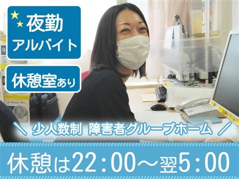 休憩は22:00~翌5:00!休憩室有☆落ち着いた環境♪夜勤アルバイト求人◇長期間在籍中の職員が多い★少人数制/障害者グループホーム【横浜市旭区・障害者グループホーム・中山駅/鶴ヶ峰駅・介護職・夜勤アルバイト】