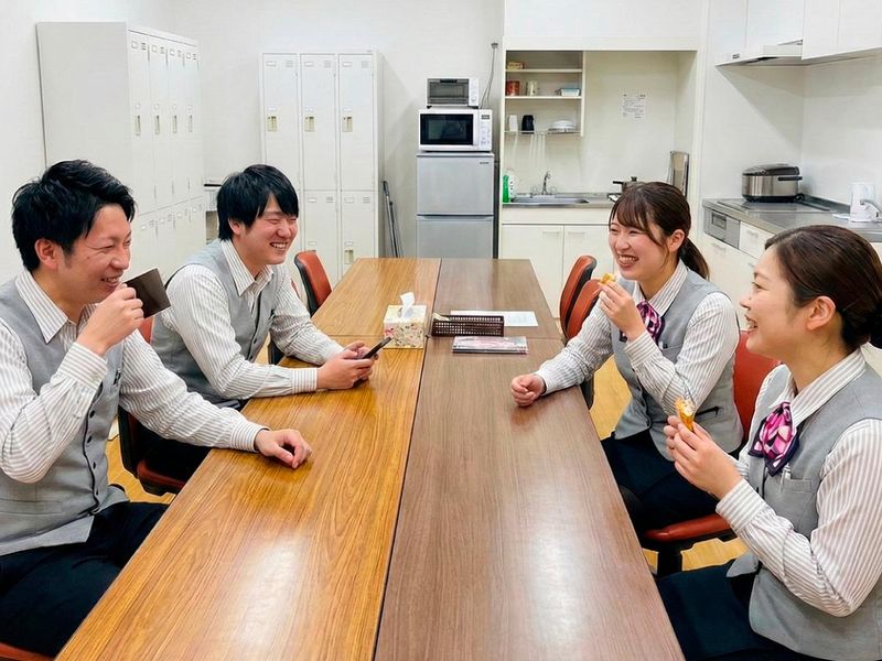 職場環境 20代・30代が中心です。社員の離職率は5年連続3%未満。事情があって一度退職した人も落ち着いたら復帰したりもしています。それほどウチを気に入ってくれているのは光栄です♪ 店舗のスタッフは12名(男女比1:1) 喫煙所:喫煙所あり(屋内) ・喫煙専用室設置 ・加熱式たばこ専用喫煙エリア設置