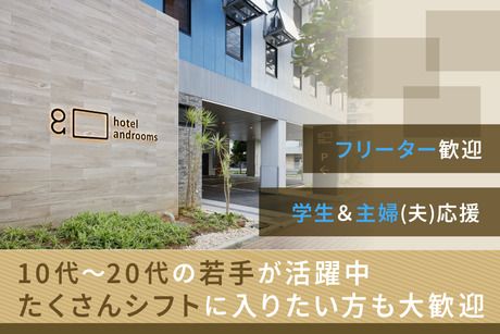 仕事内容 \ 学生さん・フリーターさん活躍中の職場 / 新感覚サウナが話題の 「ホテル・アンドルームス 那覇ポート」で フロントスタッフを募集しています☆彡 ▼具体的には… □:チェックイン・チェックアウト □:予約受付などの電話やメール応対 □:お客様へのご案内 □:駐車場の機械操作 □:フロント周辺の簡単な清掃 □:備品補充などの雑務 etc. ゲストサービススタッフとして、 ホテル運営業務全般をお任せします。 < 未経験からのチャレンジ応援 > いろいろな業務が楽しめる環境♪ お仕事の幅はできることから少しずつ 広げていただきますのでご安心ください◎ < サウナ好きの方も大歓迎です > 自慢の施設を、あなたの職場に!! 当ホテル自慢の海底サウナや ルーフトッププールを目的に ご宿泊されるお客様も多数いらっしゃいます。 趣味を仕事に活かしながら、 お客様の憧れの空間を支えるやりがいを 一緒に感じてみたい方にもおすすめです♪ ◆週1日~勤務OK◎たくさんシフトに入りたい方も大歓迎! <勤務時間> 22:00~翌朝6:00(実働7時間・休憩60分) 深夜時給は1438円! 夜の時間を活かして働きたい方にピッタリ。 ・効率よく収入を得たいフリーターさん ・学校や昼間の予定と両立したい学生さん ・深夜割増でしっかり稼ぎたい方 落ち着いた雰囲気の中で接客できるのも 夜勤ならではの魅力です♪ <日勤シフトとの組み合わせもOK> 6:00~15:00(実働8時間・休憩60分) 13:00~22:00(実働8時間・休憩60分) ★特に、遅番・夜勤に入れる方、 いろいろなシフトに柔軟に対応できる方優遇◎ ◆スタッフの意見や特性を活かした職場づくりに取り組んでいます! 「こうすればもっとお客様に喜んでもらえる」 そんなあなたのアイデアは積極的に採用◎ あなたの感性や個性を活かして、 一緒により良い環境を作っていきませんか? 【 活気のあるフレッシュな環境♪ 】 スタッフの多くが20~30代の若手で、 チームワーク良く働いている職場です! お客様も旅行を楽しむ若年層やグループが多く 明るく賑やかな雰囲気の中で働けます。 【 語学スキルを活かしたい方歓迎 】 最近は台湾をはじめ、 世界各国から訪れるお客様も多く、 英語や中国語を活かせるシーンが増えています。 「学んだ言葉を実践で試したい」 「グローバルな環境で成長したい」 という方には、これ以上ないステージです。 働きながら、生きた語学力を磨きませんか? ※自動翻訳機があるので話せなくてもOKです! 【 キャリアUPを目指したい方応援 】 契約社員から正社員へ ステップアップできる制度あり。 ホテル業界で長くキャリアを築きたい方や、 腰を据えて働きたい方にも安心の環境です。 ◆ホテル業界が初めての方も大歓迎! まずは入社後に、業務の流れや接客の基本を しっかり学べるオリエンテーションや研修をご用意! 接客マナーや言葉遣い、身だしなみなど、 ホテルならではの丁寧な対応が身につきます。 実際に業務を始めてからも、 頼れる先輩スタッフがそばについて、 OJTで一つひとつの業務を丁寧にサポート。 分からないことや不安なことは、すぐに相談できます◎ ◆「&」のあるホテル ホテル名「&androoms」の由来は、 それぞれの街に合わせて“そこにあったら嬉しいもの”を ホテルにプラスする、という考え方にあります。 那覇ポートでは、街の中心にいながらも リゾート気分を味わえるように、 開放感あふれるルーフトッププールと、 海底をイメージした幻想的な 新感覚フィンランド式サウナをご用意しました。 プールサイドで過ごす心地よいひとときや、 ロウリュの蒸気に包まれる特別な体験は、 旅の疲れを癒しながら記憶に残る滞在を演出します。 ここでしか味わえない体験を、 一泊のストーリーとしてお客様に届ける。 そんな想いを胸に、 私たちはこの場所をつくり続けています。