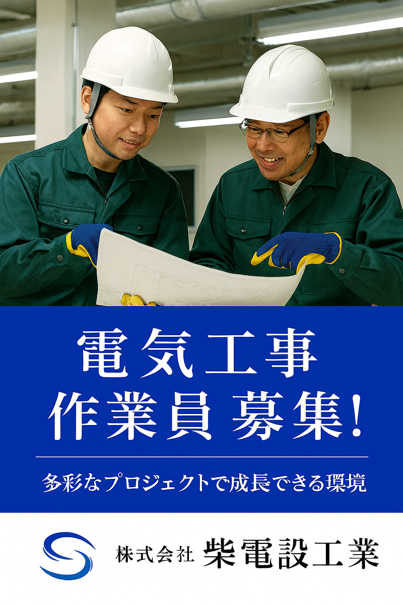 仕事内容 ✅知識・資格があれば実務未経験OK ✅昇給&賞与あり!手当も充実♪ ✅日曜固定休+残業少なめ! ──────────﹒☆﹒﹒── ⏩電気工事作業員をお任せします! <具体的な業務内容> ■電気配線工事や設備の設置 ■定期点検・メンテナンス ■施工図面に基づいた作業 ■現場での安全管理・作業進捗管理 ■円滑なコミュニケーションによる作業推進 <主な現場> 公共施設、一般住宅など ※現場へ直行の場合あり。 ★お客様の安全で快適な生活を サポートする重要なお仕事! 資格と知識を活かして 現場で技術を磨きませんか! ──────────﹒☆﹒﹒── <株式会社柴電設工業の特徴> ⭐チームワークを重視 ─────────── 社員一人ひとりが協力し合い、 互いに支え合いながら仕事を進めています。 和やかな雰囲気の中で、 確かな技術を学ぶことができます。 ⭐未経験者も安心の教育体制 ────────────── 経験豊富なスタッフが丁寧に指導。 現場で必要な知識や技術を、 基礎からしっかり身につけられる環境です。 ⭐成長できるフィールド ──────────── 多彩なプロジェクトに携わる機会があり、 実務を通じてスキルアップが可能。 資格取得支援制度も整えており、 キャリア形成を力強くサポートします。 ⭐安心して働ける環境 ─────────── 昇給・賞与や各種手当など、 福利厚生が充実。 長期的に安定して働きたい方にも 最適な職場です。 ──────────﹒☆﹒﹒──