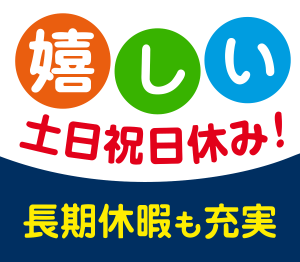 休日休暇 土日祝休み GW・お盆・年末年始の大型連休あり 有給休暇あり