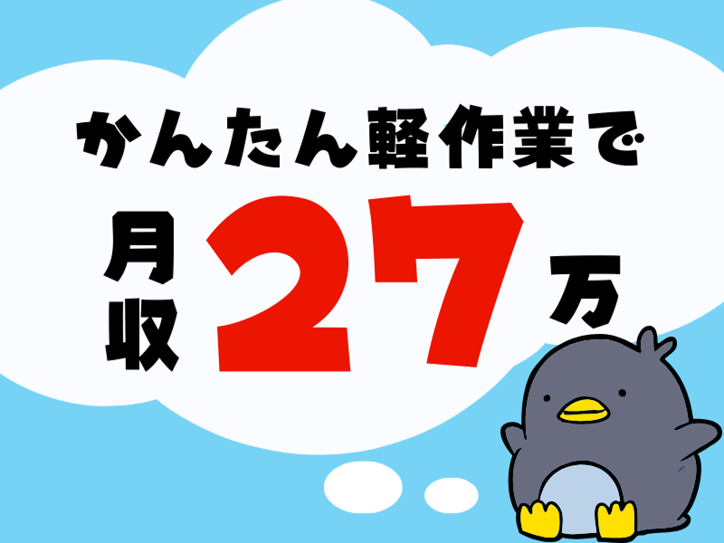 仕事内容: ~・~・~・~・~・~・~・~・~・~ \人気エリア川越市でカンタン軽作業!/ 高時給&残業手当で月収27万以上OK◎ 家賃補助5.7万ありの寮は早い者勝ちです! ~・~・~・~・~・~・~・~・~・~ 【製薬メーカー工場で梱包作業】 1、パッケージの印字を確認 2、問題なければ段ボールに詰めていく 以上を繰り返す単純作業です! 空調完備で快適なお部屋での作業となります! 暑さも寒さも無縁なので とっても働きやすい環境です◎ 他にも検査や出荷作業などの工程もあり! 適性を考慮しての配属となります! どれも簡単な軽作業なのでとっても楽々◎