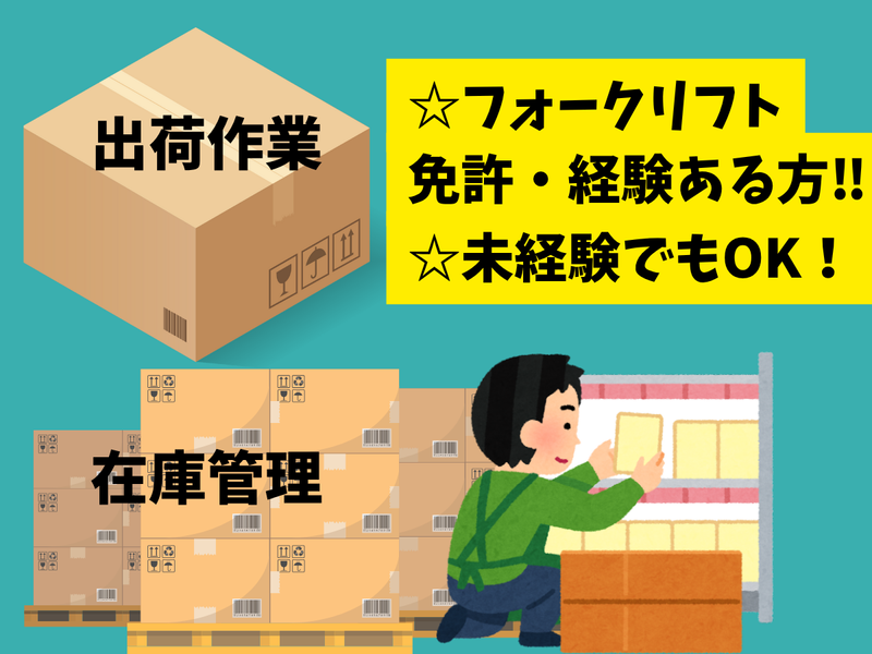 仕事内容 ■お仕事PR \地元の優良企業で長期勤務!/ ✨電話応募も受付中です✨ 0120-47-8088 (通話無料)[電話受付時間:9時~18時] 『求人票を見た』とお伝えください。 ✅あなたにお任せする仕事は・・・ 自社加工製品の在庫管理や 出荷作業を中心とした業務を行います。 【具体的には】  ̄ ̄ ̄ ̄ ̄ ̄ ̄ ■製品の出荷及び在庫管理 ■製品等の受け入れ ■製品の計量 ■その他付随業務 ※出荷部署の人員は4名ほど。少人数で対応しています。 ※フォークリフト免許・経験があれば優遇します。 ※金属関係の製品もある為、油が手に付着したりします。 もし業務で分からない事があれば 都度周りを頼ってくださいね^^ 少しでも興味のある方は お気軽にお問い合わせください 難しいことはありません♪ 未経験の方でもすぐご活躍いただけます! ■職場の雰囲気 20代~30代のスタッフさん活躍中! ■株式会社アクティーでは、 人材の派遣・人材の斡旋・アウトソーシングサービスなど、 多彩な人材ニーズにお応えしております。 <工場求人> 製造・物流・軽作業 <オフィス・サービス系> 事務・営業・医療・介護 サービス・エンジニア・技術 など 【アクティーが選ばれる3つの理由】 1.地域密着の安定雇用 2.充実のサポート体制 3.スキルアップ 地元企業様とのつながりを大切にし、 地域雇用の安定に全力で取り組んでいます。 地域に根ざした活動で、 あなたのお仕事を応援します。 まずは、お気軽にお問い合わせください★ <お仕事スタートまでの流れ> ●お問い合わせ ●面接 電話・WEB面接なども対応可 ●登録完了 ●お仕事案内 ●雇用契約 ●お仕事開始 ●アフターケア 短期間でお仕事開始もできます!