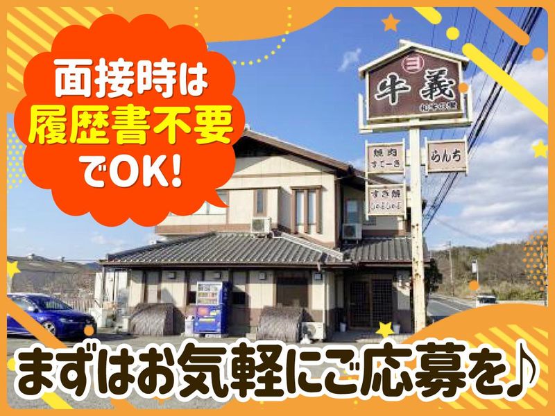 選考プロセス 面接時、履歴書不要です! 面接日・勤務開始日なども、お気軽にご相談ください。 面接の際に「お店の場所が分からない」 「電車が遅れそう」 「体調が悪い」等ありましたら、 お気軽にご連絡ください。 面接日の日程変更などもさせて頂きます◎ 皆さんにお会いできることを楽しみにしております。 ■焼肉 牛義 ■加古川市西神吉町宮前863−33 ■TEL:079-432-7432