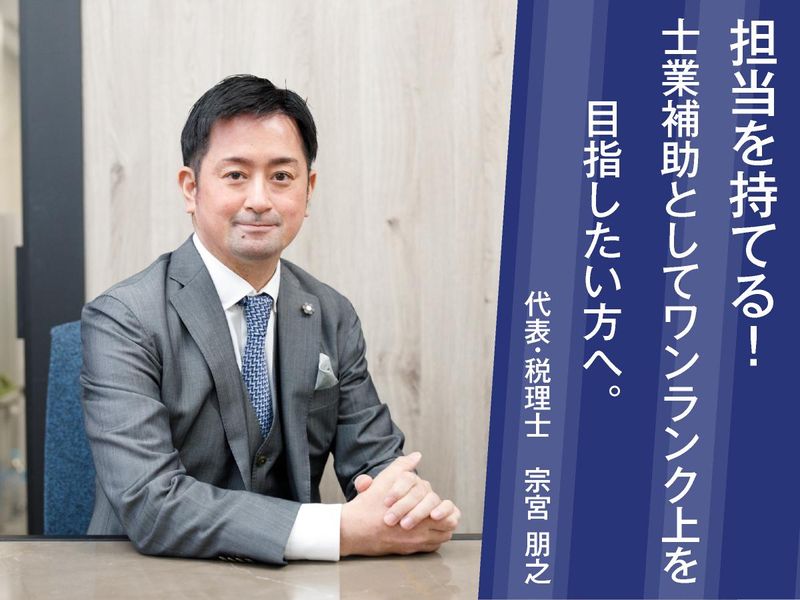 仕事内容 【正社員募集】資格不問!税務の実務を学びながら、 やりたいことにもキャリアアップにも挑戦しませんか? 少数精鋭の職場で知識・視野を広げ、 ワンランク上の士業補助を目指せます! 神戸の街並みが見渡せる広くて綺麗なオフィスで 、 仕事と家庭の両立を実現できる働き方を手に入れましょう! 【✅求人のおすすめポイント】 ♪やりたいが叶う!成長をサポートする環境◎ ・専門性の高い業務に挑戦可能! M&Aや相続など 、幅広い業務に手を挙げることができ 、 士業補助としてのエキスパートや税理士を目指すことも 事務所がサポートします! ・明確なキャリアパス! 組織は今後も拡大予定のため 、マネジメントや 責任者といったキャリア構築が現実的です。 ・スキルアップを後押し! 税理士試験の科目合格ごとにお祝い金が 支給され、資格取得支援が充実しています。 ♪ワークライフバランスを重視した働きやすい環境 ・年間休日120日以上! 完全週休2日制(土日祝休み)で、 年末年始、GW、夏季休暇(3日間自由に取得可能) が充実しています。 ・有給休暇を取得しやすい風土! 全員が有給を取得しており、 月に2~3日の取得も可能です 。 ・子育てを全力でバックアップ! 有給とは別に「子育て特別休暇」(年5日)があり、 子供の学校行事への参加などに利用できます。 時短正社員制度もあり、仕事と家庭の両立を支援します。 ・残業はほとんどなし! 残業も殆どなく、月平均の残業時間は 20時間以内、原則定時退社を推奨しています◎ ♪駅近で快適なオフィス環境 ・通勤アクセス抜群! JR・阪急・阪神「三宮駅」より徒歩8分 、 ポートライナー「貿易センタービル前」すぐの立地です! ・広くてきれいなオフィス! 勤務地は神戸商工貿易センタービル20階で、 神戸の街並みが見渡せる快適な空間です ◎ 【✅宗宮税理士事務所のご紹介】 <<代表税理士:宗宮より皆様へ>> はじめまして。代表税理士の宗宮です。 今年で開業から10年を迎えました。 当事務所は、スタッフ一人ひとりが長所を発揮し、 活躍できる風土とポジションを作ることを私の役目とし、 皆の力を借りながら成長してきました。 現在、顧問先は約180社に上り、 提供できる業務も多岐にわたります。 「高齢の先生の下で将来が不安」 「代表がワンマンで楽しくない」 「担当を持って成長したい」 など、転職の理由は様々だと思います。 そうした不安を解消し、あなたの意欲や想いを 叶えたいのであれば、ぜひ一緒に働きましょう。 M&Aや相続など、分野を問わず何でも手を挙げてください。 様々な業界の顧問先がいるため、業種理解が進み、 対応力も広がります。組織は今後も拡大していくため、 マネジメントや責任者といったキャリア構築も現実的に可能です。 私たちが掲げるのは、 「お客様の経営目標達成のために必要な一つのピースになる」 という使命です。時には鋭利に道を切り拓き、時には柔和にお悩みを 傾聴する親身で正面から向き合うのが私たちの在り方です。 「頼まれごとは試されごと」という気概が特徴で、 対応できない業務はありません。 フットワーク、ネットワーク、知識を備え、 お客様のよきパートナーとして成長し続けています。 成長したい、キャリアを重ねたいという想いを持った 誠実で嘘をつかず、報連相ができる方を大歓迎します。 【★仕事内容】 士業補助業務全般(内勤の月次処理が中心) 資格がなくても、税務の実務を学びながらスキルアップできる環境です。 <<具体的な業務内容>> ・クライアントの月次処理・申告書作成。 ・申告書を一人で作成し、 Wチェックを行う業務を含みます。 ・会計ソフトへの仕訳入力・帳簿作成補助。 ・決算書類の作成サポート。 ・領収書・請求書の整理、資料チェック。 ・税務署等への書類提出。 ・資料ファイリング、データ管理。 ・その他 ★お客様との対話やチーム作業が多く、 デスクワークが多い内勤業務が中心です。