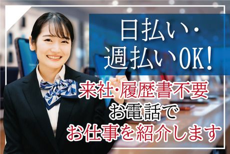 選考プロセス 平日10~19時の間のWEB応募には 応募確認後スグに入力頂いた電話番号に06-6225-8324から連絡します。 その際にシフトや開始日等の希望をうかがい、お仕事を紹介します。 ※連絡時にご不在の場合は携帯番号を入力頂いている場合はショートメッセージをお送りします ※土日祝や10~19時外の応募は翌営業日に連絡します 【問合せ先について】 問合せ先:06-6225-8324 ☆不明な点やもう少し詳しくお仕事の確認をされたい場合などは お気軽にお問い合わせください。 ●弊社営業時間:平日10~19時 ※営業時間外でも対応可能な場合もあります。 応募方法 来社&履歴書不要! 必要事項を入力の上、【応募する】ボタンよりご応募下さい。 電話での応募も受付中! お急ぎの方は下記番号よりお電話をお待ちしております。
