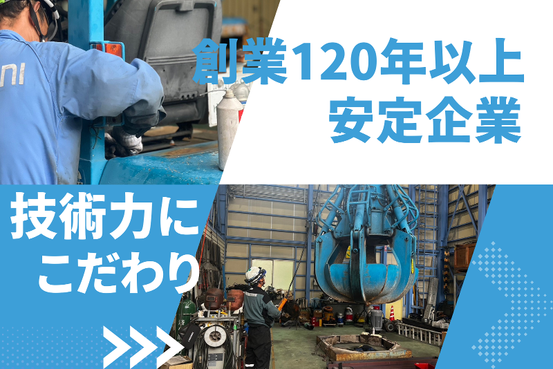【正社員】重機メンテナンススタッフ/年収400万円以上/年間休日119日/有給消化率90%以上/自動車通勤可/無資格OK/バイク/板金