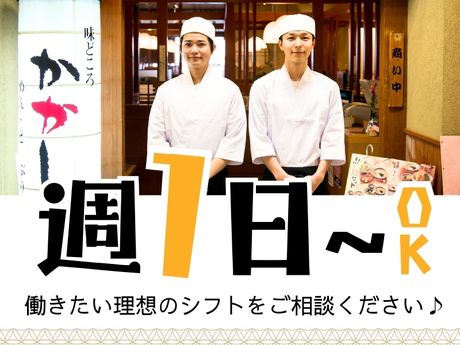 仕事内容 仕事内容のこと(週1日・1日4時間~OK!) <具体的には> ・野菜カットなどの仕込み ・調理 ・盛り付け ・洗い場での食器洗浄 など まずは簡単な皿洗いから。 食洗機に入れてボタンを押すだけ! 揚げ物や調理補助も無理なく ペースを見ながらお教えします。 食品の仕込みスタッフや 割烹やカフェスタッフの経験者優遇! キッチン経験者が活躍しています! 一緒に働くスタッフのこと ・土日祝メインで勤務するフリーターさん ・ガッツリ働くWワーカーさん ・家事や子育てと両立の主婦(主夫)さん など 程良い距離感のサッパリした関係なので、 飲み会や休みの日に遊ぶということも そこまでないみたいです。 アニメや音楽、アイドルなど 多趣味な方が多いので、 気の合うスタッフが見つかるかも!?by店長 シフトのこと ・土日祝のみ ・17時から、18時から ・Wワーク ・扶養内勤務 ・短時間での勤務 など シフト自由で働けます。家庭やWワークとの両立もOK! 自己申告シフト制なので、 ・来月はもう1つのバイトが忙しくなるので今月は稼ぎたい! ・通院があるので今週はちょっと控えめで。 などなど…生活優先でシフト調整OK! シフト削りもないので、 安定して収入がゲットできます◎ 待遇・福利厚生のこと ・従業員割引制度 ・まかない一律340円 ・制服貸与 ・交通費支給 など 従業員証を見せるだけで 施設内の他店でお得に利用できます。 かかしの自慢は、四季折々の懐石料理。 旬のお肉やお魚、野菜を使ったヘルシーで 満足できると幅広い年齢層に好評です。 スタッフインタビュー ≪20代・フリーター≫ フルタイム勤務でかかしに応募しました。 最初は仕事の流れやメニューを覚えられるか不安でしたが、 配膳のときに「これは〇〇定食だよ」と店長が丁寧に教えてくれたり、 実際にまかないを食べながら覚えていくと意外にスムーズに習得できました! 周りのスタッフがしっかりサポートしてくれたおかげで、 今では毎日楽しく働けています♪ さらに、車通勤OK&駐車場無料なのも助かります◎